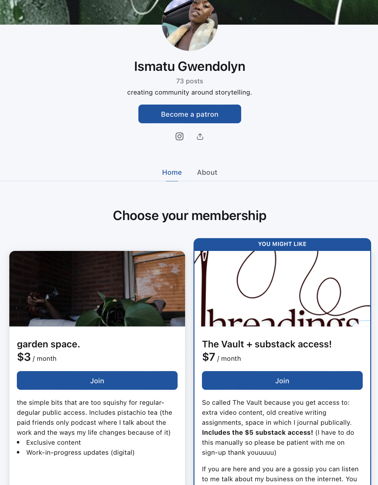 So if you would like to, just out of the kindness of your heart, there is the feature on substack where you can put in however much you would like to a month or a year. And that's really helpful. Those, those, these are the avenues that really help me like, pay rent because I know exactly how much is coming in. And if you can't do anything monthly, but you can break off like, a one time donation, those go for food, generally— like food, day to day supplies for myself and my elders.